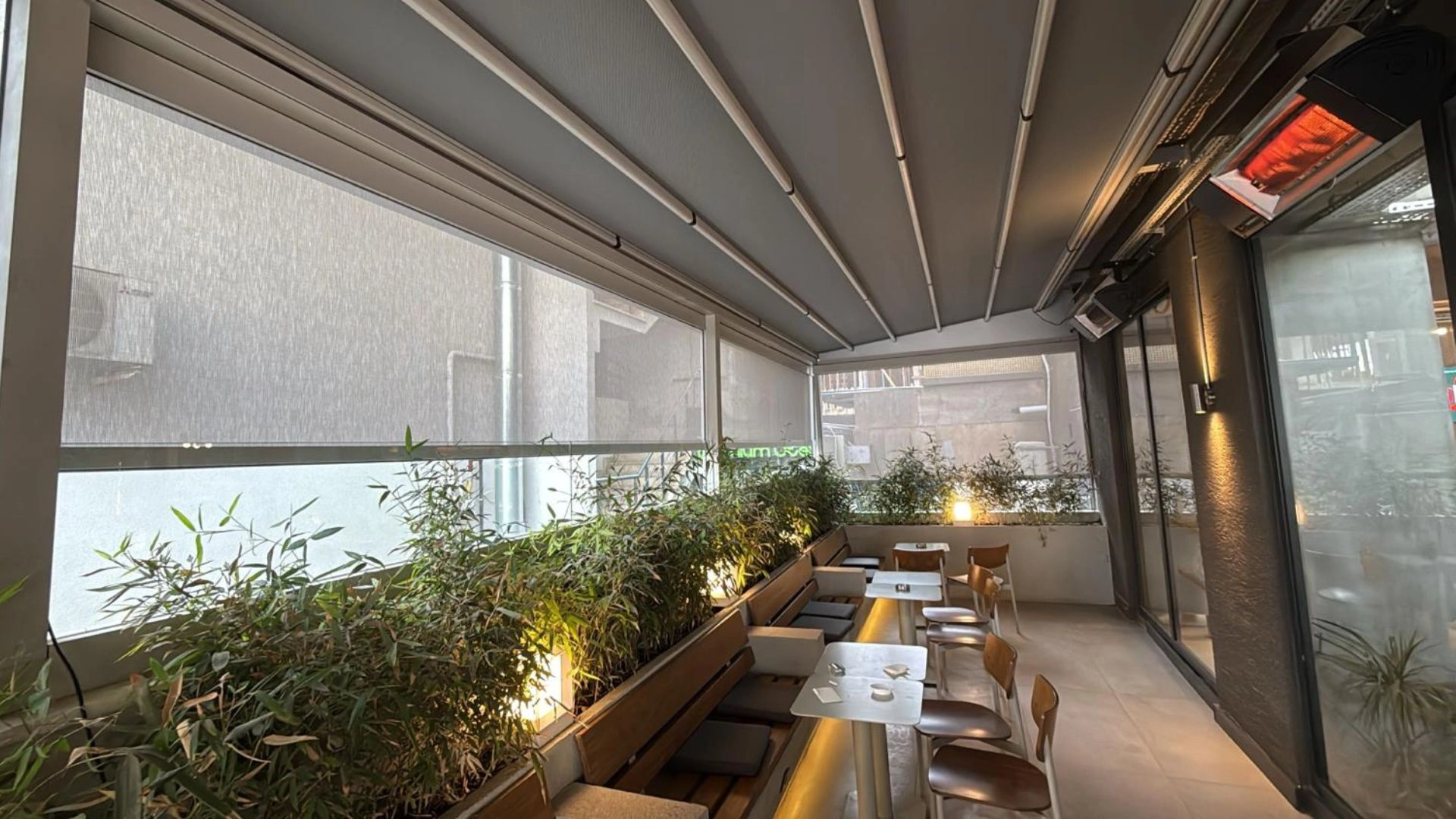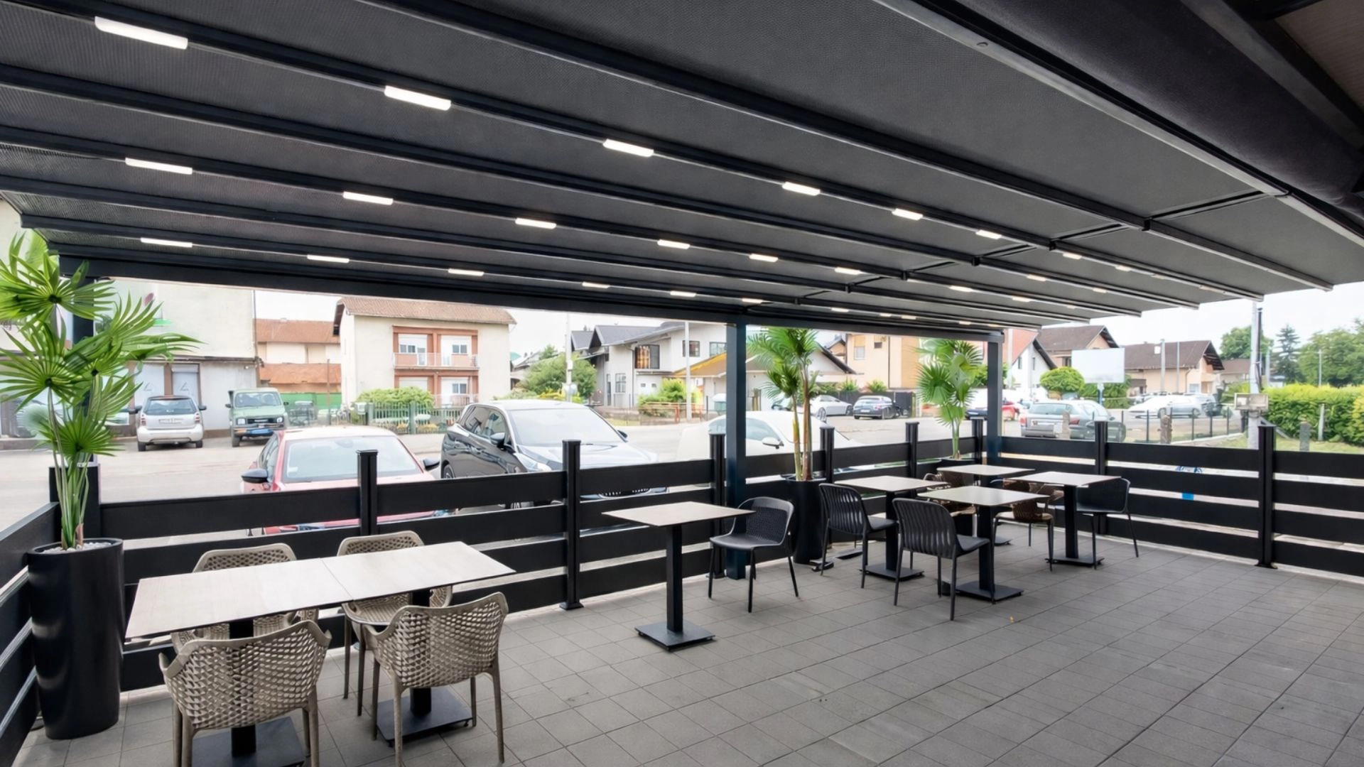 The system can be surrounded by sliding, folding and guillotine glass products and used as a winter garden.