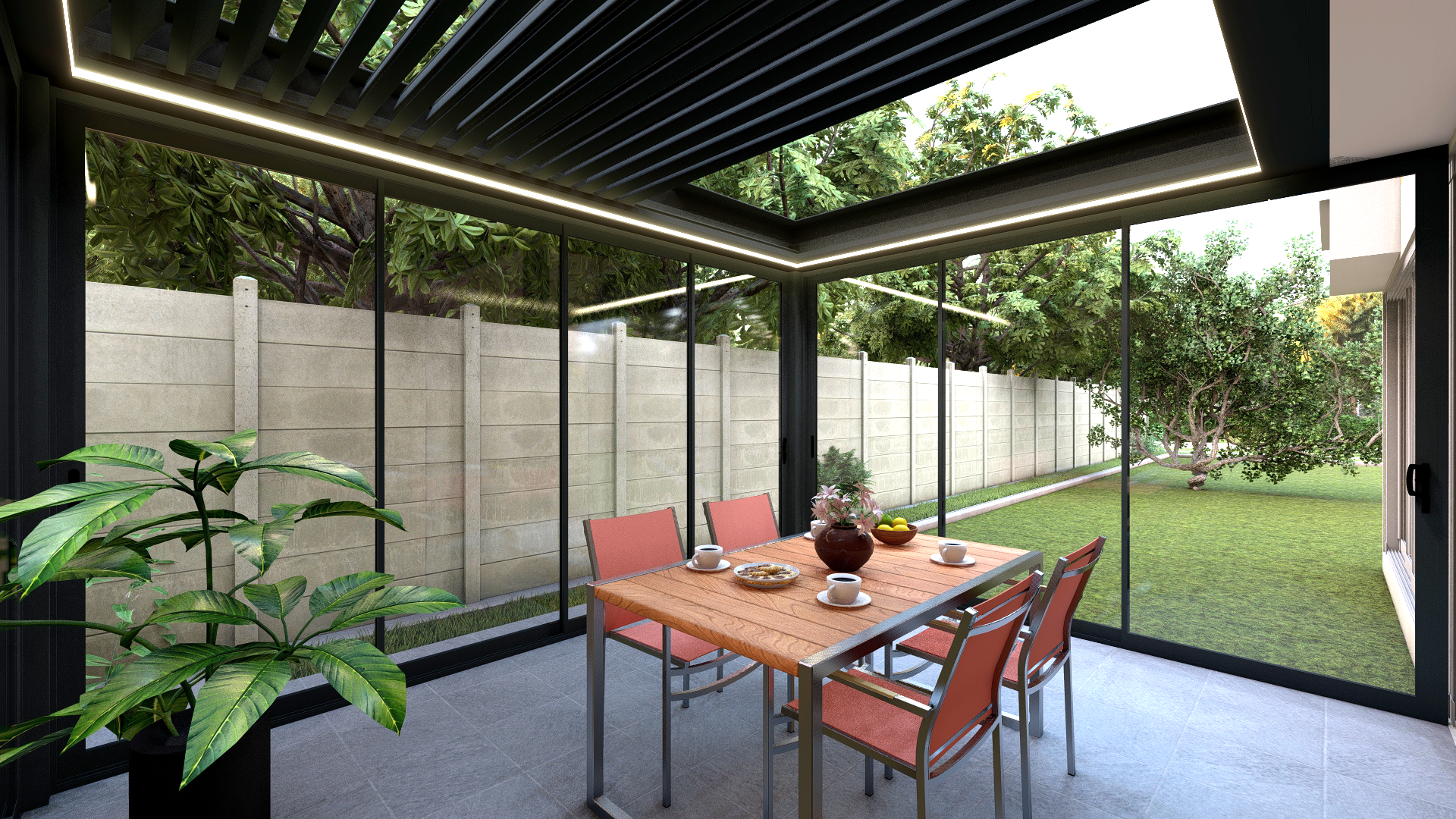 Paneller tek tek ya da gruplar halinde sağa ve sola toplanarak alanın tamamen açılmasına olanak tanır. Aynı şekilde kolayca kapanarak alanı dış etkenlerden korur.